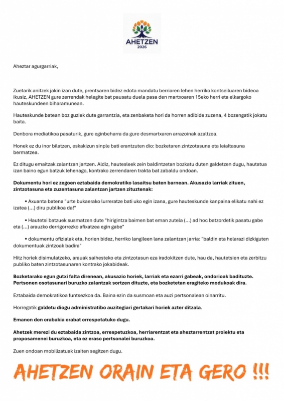 Ahetze mérite un débat honnête, respectueux, portant sur des projets et des propositions pour le village et les aheztar et non pas sur des attaques personnelles.
